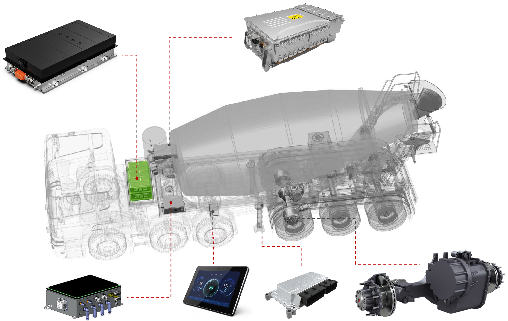 聯合研發(fā)的混合動力牽引攪拌半掛車,以其開創(chuàng)性的頭掛一體智能驅動技術,開辟了綠色高效商砼運輸的新天地。它集成了先進的混合動力技術,實現了混凝土攪拌運輸車產品高效能、低排放、輕量化、智能化的目標,引領混凝土行業(yè)對高品質攪拌運輸車的需求。